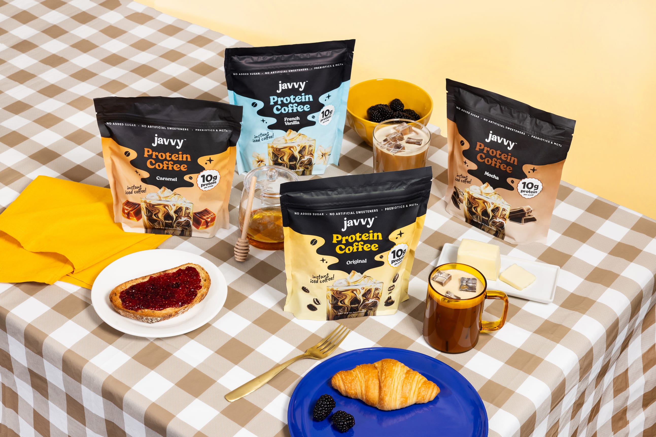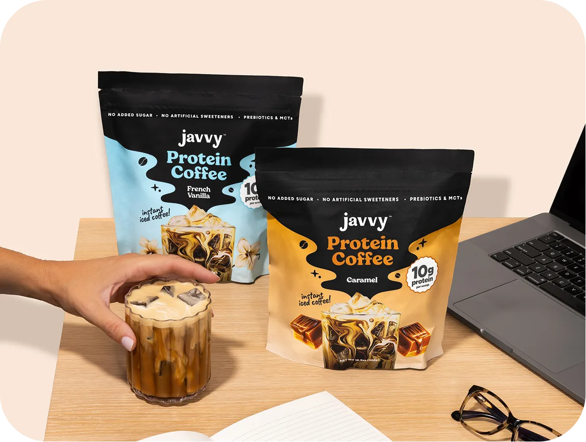 A Javvy a 100% arabica kávé gazdag ízét ötvözi a prémium tejsavófehérje és MCT olaj erejével. Egyedülállóan komplex reggeli rutinod egyetlen pohárba sűrítve: energizál, feltölt és támogatja az izomépítést is.