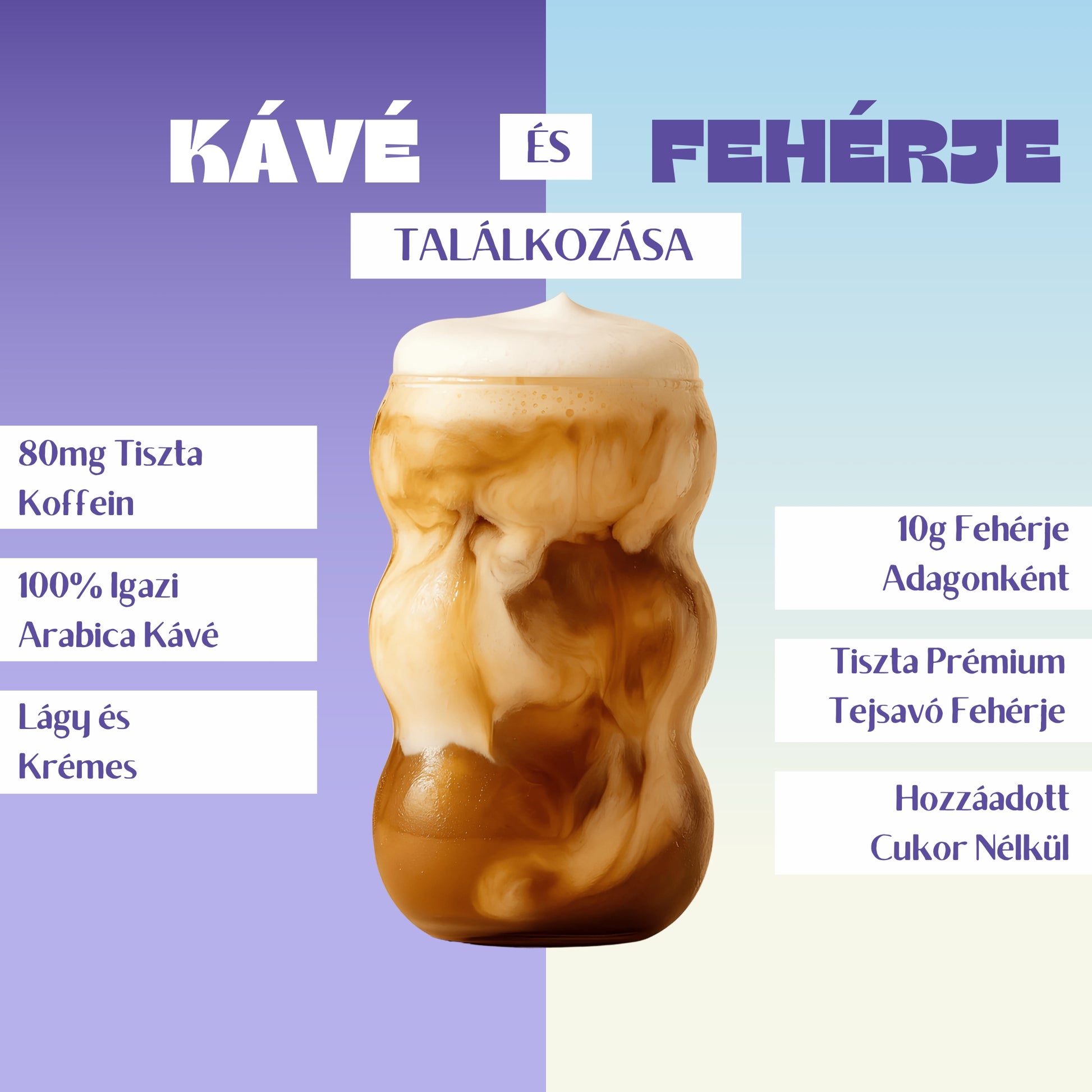 Prémium arabica kávé és tejsavófehérje egy pohárban – reggeltől edzés utánig.
