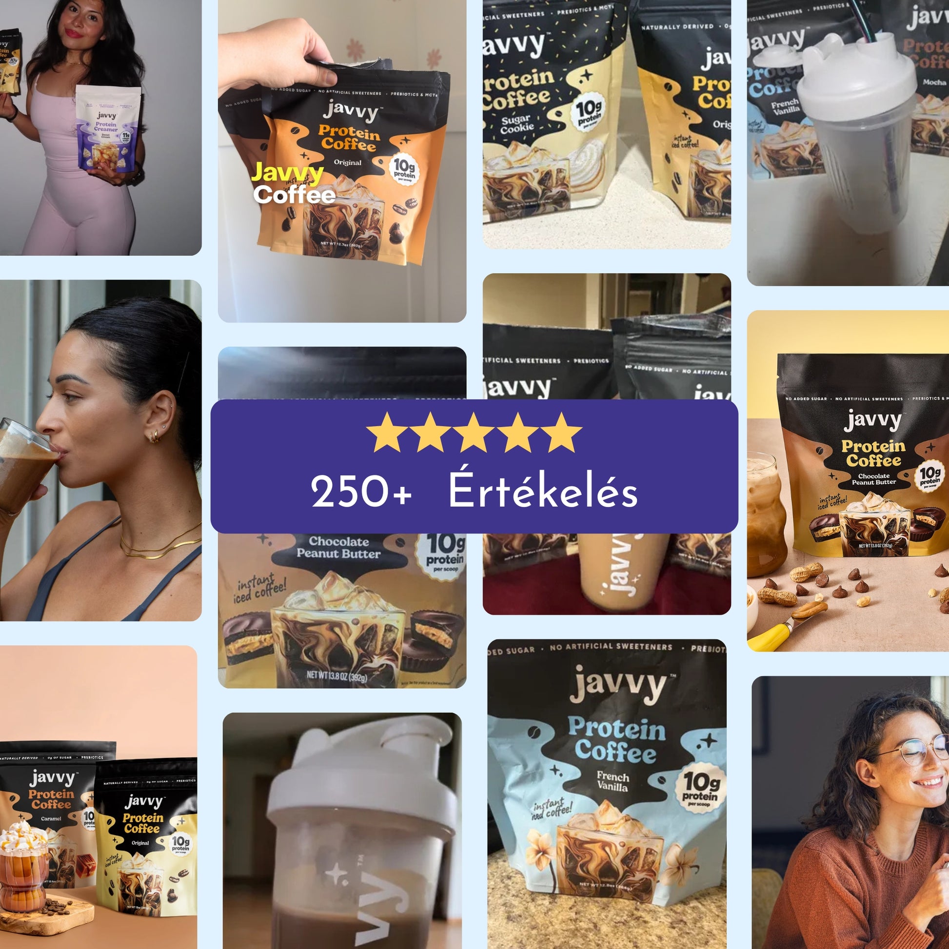 Igen, a Javvy 100% arabica kávéból készül. A fehérje és a többi összetevő íze nem érződik – csak a gazdag, krémes kávéélmény marad.