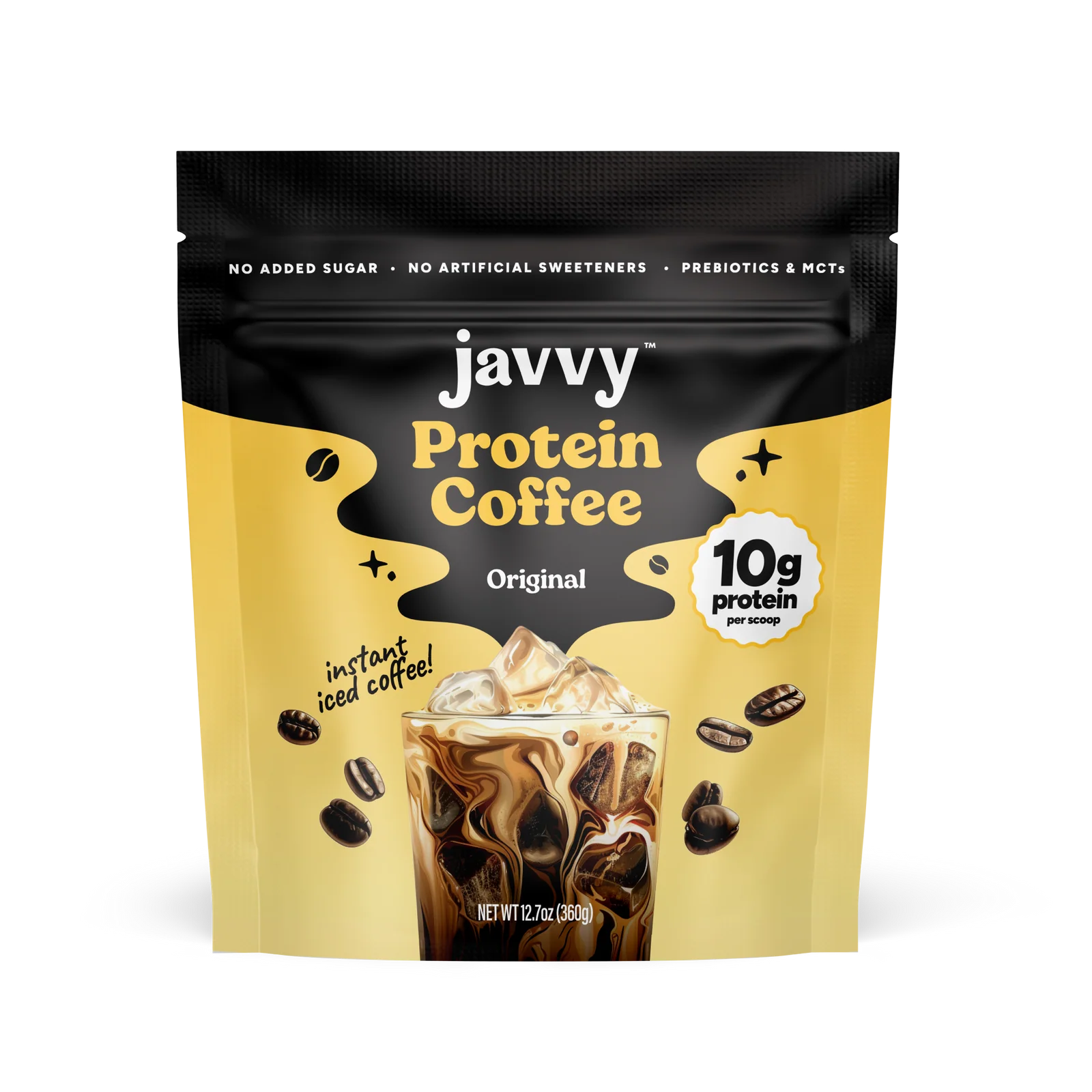 A Javvy a 100% arabica kávé gazdag ízét ötvözi a prémium tejsavófehérje és MCT olaj erejével. Egyedülállóan komplex reggeli rutinod egyetlen pohárba sűrítve: energizál, feltölt és támogatja az izomépítést is.